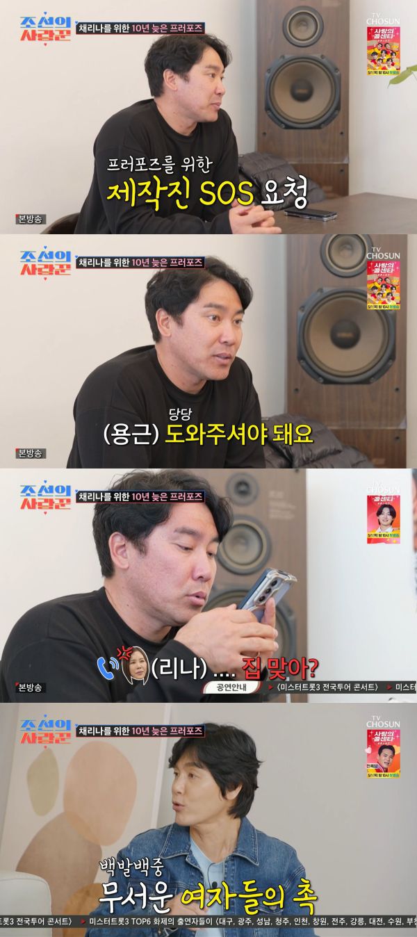 이날 박용근은 시험관 시술에 실패해 슬퍼하는 채리나를 위해 프러포즈를 준비한다고 밝혔다. 그는 채리나 몰래 제작진을 만났다.