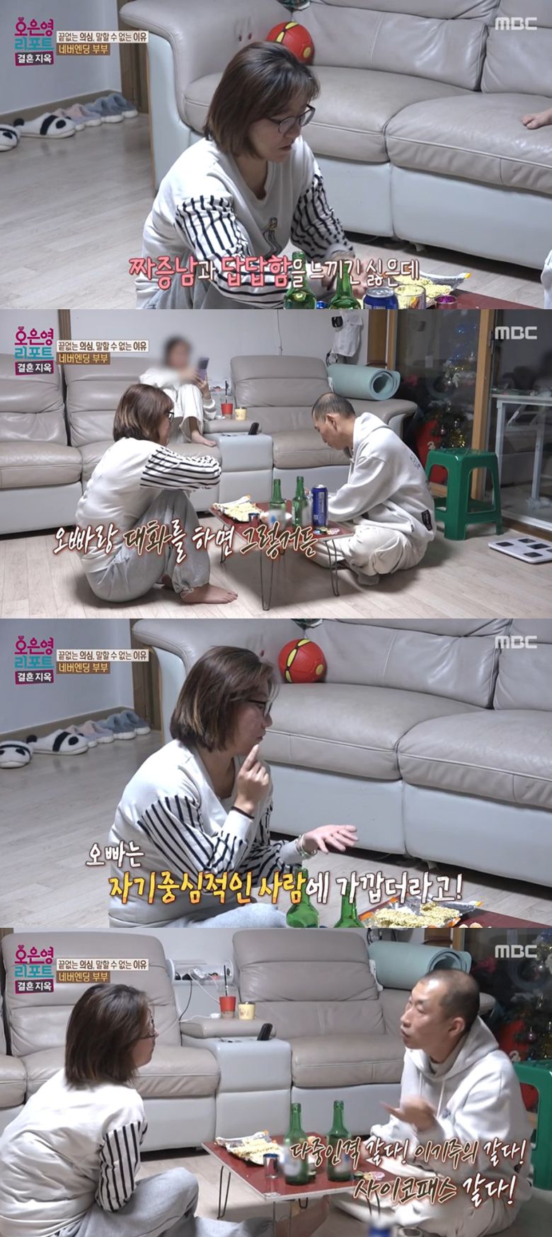 남편이 쉬는 날 밤, 부부는 술잔을 기울이며 대화를 나눴다. 이 자리에서 아내는 "짜증남과 답답함을 느끼긴 싫은데 오빠랑 대화를 하면 그렇다"고 불만을 쏟았고, 남편은 "내가 (말을) 잘 못 알아들어서?"라고 반문했다.