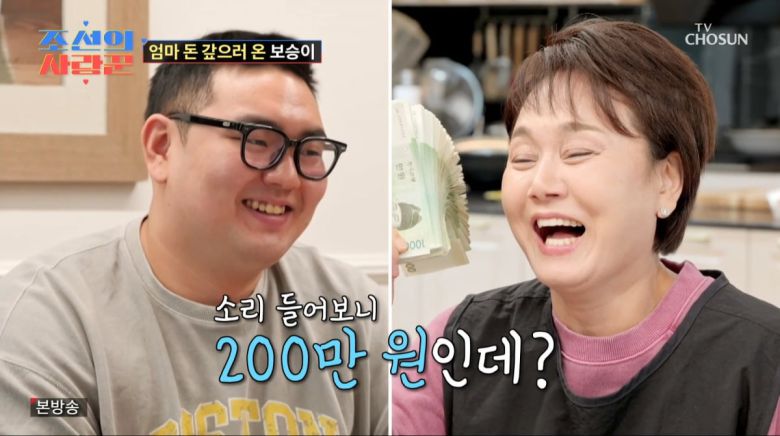 '조선의 사랑꾼' 손보승이 이경실에게 빌린 200만원을 갚았다.