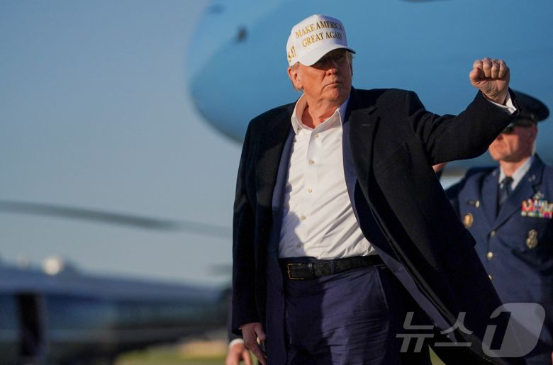 도널드 트럼프 미국 대통령이 지난 27일(현지시간) 메릴랜드주 앤드루스 공군기지에 착륙한 대통령 전용기에서 내려 주먹을 쥐어 보이고 있다. ⓒ 로이터=뉴스1 ⓒ News1 류정민 특파원 |