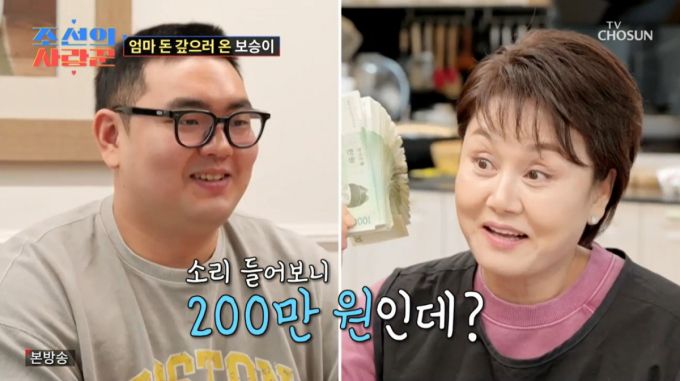 이경실 아들 손보승이 엄마에게 빌린 돈 200만원을 갚았다. /사진=TV조선 '조선의 사랑꾼' 캡처