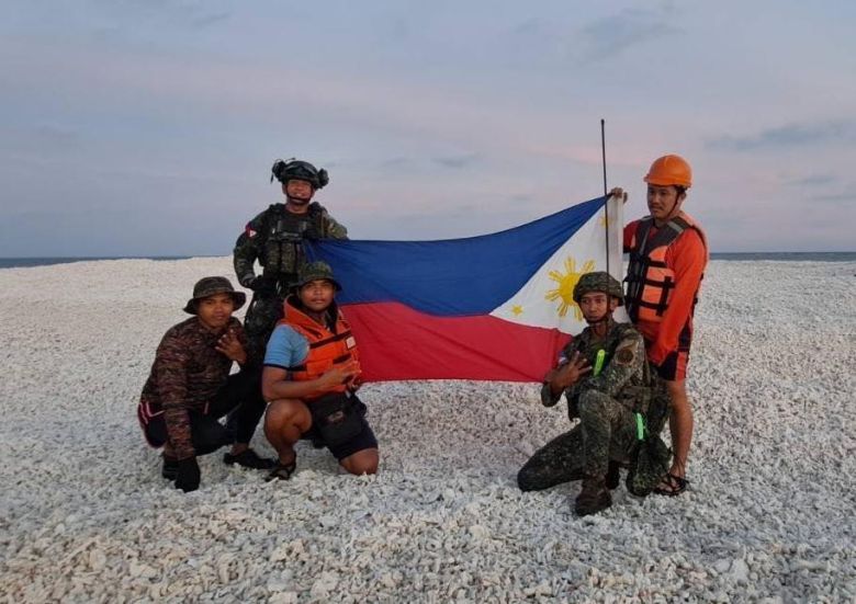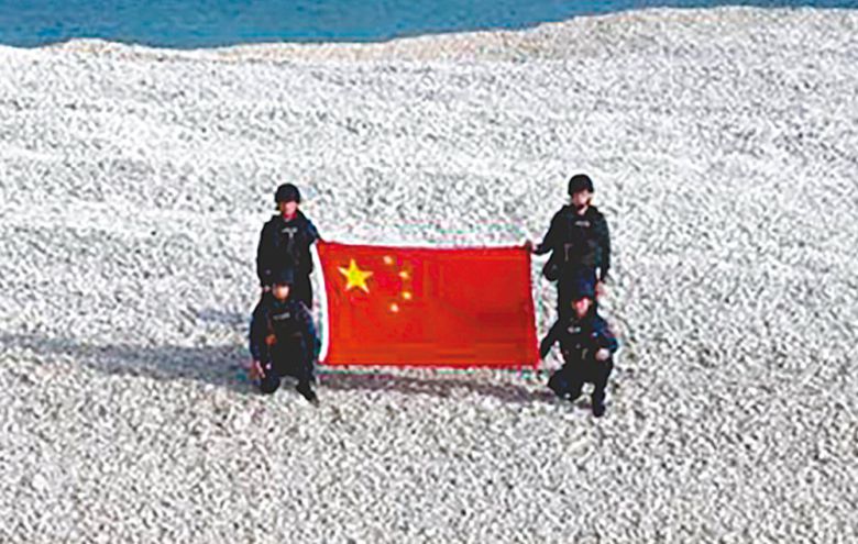 남중국해 암초서 中 오성홍기 펼치자… 필리핀도 똑같이 국기 펼치며 맞불