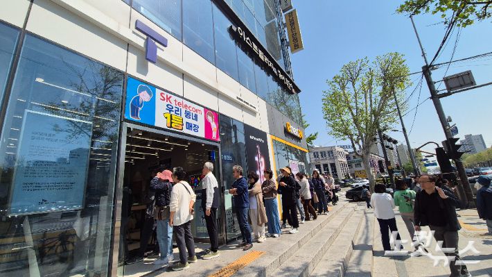 같은 시각, 서울 대치역 인근 대리점 상황도 크게 다르지 않았다. 매장 앞 줄은 30미터 이상 길게 이어졌고, 눈에 보이는 사람만 50명이 넘었다. 매장 측은 정식 오픈 시간인 오전 10시보다 일찍 문을 열었지만 유심 교체는 사전 예약자에 한해서만 이뤄졌다. 예약 없이 현장에서 일찍부터 대기한 이들은 허탈하게 발걸음을 돌려야 했다. 현장에서는 "일단 기다릴까. 아니면 다른 데 갈까"라며 혼란 속에서 가족과 통화하는 고객도 눈에 띄었다.