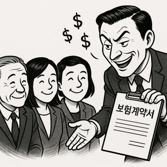 챗GPT로 보험설계사가 고객에게 부정한 목적의 보험 가입을 유도하는 모습을 묘사한 그림. 챗GPT