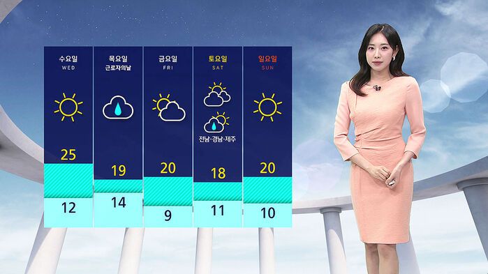 낮 기온은 서울 20도로 어제와 비슷하겠습니다.