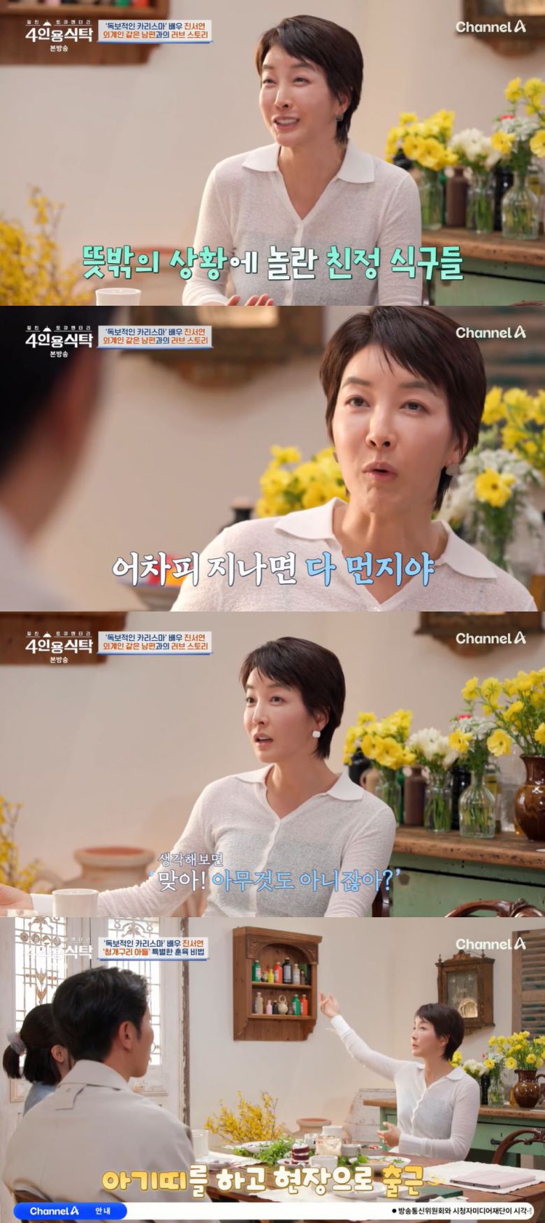 28일 방송된 채널A '절친 토큐멘터리 4인용식탁'에는 배우 진서연과 '절친' 수영, 음문석이 출연했다.