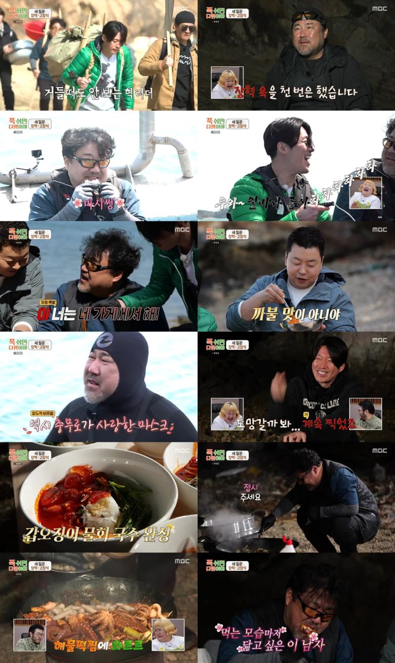 마지막 요리는 꽃게, 갑오징어, 소라, 문어, 낙지 등 이날 잡은 해산물이 몽땅 들어간 ‘해물떡찜’이었다. 여기에 더해 고창석이 직접 반죽한 떡이 들어가 화룡점정을 장식했다. 그 맛은 손님들은 물론, 하루 종일 고생한 일꾼들의 피로도 녹일 정도였다. 특히 일꾼으로, 수셰프로 활약한 고창석의 행복한 먹방은 보는 이들에게도 즐거움을 선사했다.