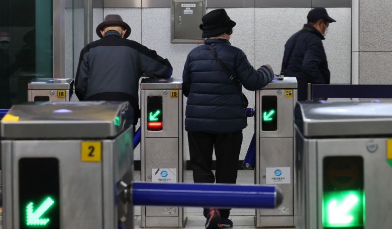시민들이 서울 지하철 개찰구를 통과하고 있다. 수도권 지하철 기본요금은 오는 6월 28일부터 150원 인상된다. 연합뉴스