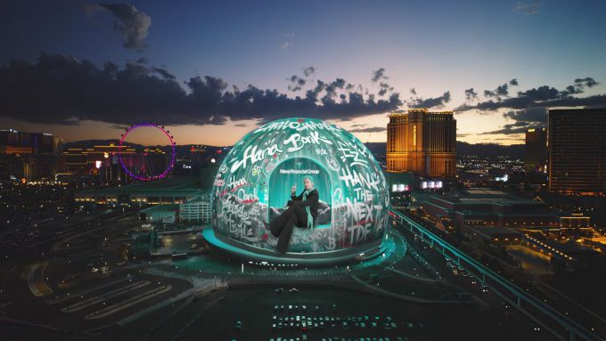 하나금융 현지시각 29일 오전 10시 미국 라스베이거스에 위치한 세계 최대 규모의 몰입형 LED 돔 '스피어'(Sphere)에서 세계 금융권 최초로 K-POP 아티스트 광고 캠페인을 온에어(ON-AIR)한다. 이번 광고 캠페인은 1분11초 영상을 로테이션 방식으로 지속 송출될 예정이다.