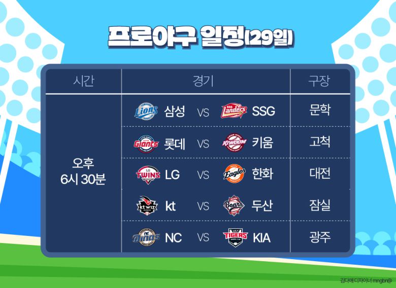 한편 kt 위즈는 윌리엄 쿠에바스를, 두산 베어스는 최준호를 앞세운다. 롯데 자이언츠와 키움 히어로즈는 각각 찰리 반즈와 김윤하를 선발로 예고했다.