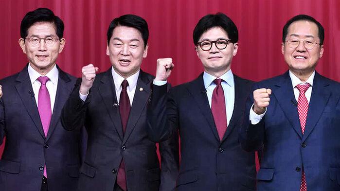 국민의힘 대선 경선 4강에 진출해 치열한 경쟁을 펼치고 있는 김문수, 안철수, 한동훈, 홍준표 후보.