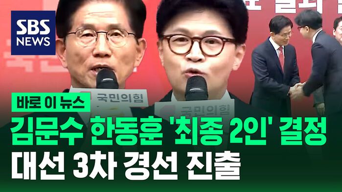 국민의힘은 오늘(29일) 제21대 대통령후보자 3차 경선(결선)에 김문수·한동훈 후보가 진출했다고 발표했습니다.