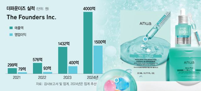 29일 뷰티업계에 따르면 더파운더즈의 지난해 매출액은 전년(1432억 원) 대비 3배 가량 증가하며 4000억 원을 넘어선 것으로 알려졌다. 같은 기간 영업이익도 400억 원에서 약 1500억 원으로 4배 가까이 늘어난 것으로 전해졌다. 2021년 매출액이 299억 원, 영업이익이 79억 원에 불과했던 점을 고려하면, 불과 3년 만에 매출액은 14배, 영업이익은 약 19배나 늘어난 것이다.