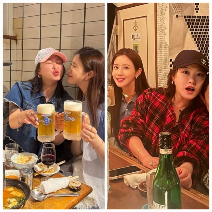 첫 번째 사진에서는 네 사람이 바에 나란히 앉아 술잔을 기울이며 미소 짓고 있었고, 이다해는 체크 셔츠에 볼캡을 쓴 캐주얼한 룩으로, 심진화는 은은한 광택이 감도는 블라우스로 시크한 매력을 뽐냈다. 이어진 사진에서는 두 사람이 맥주잔을 들고 얼굴을 맞댄 채, 마치 한 컷의 시트콤을 보는 듯한 코믹한 표정으로 시선을 끌었다.