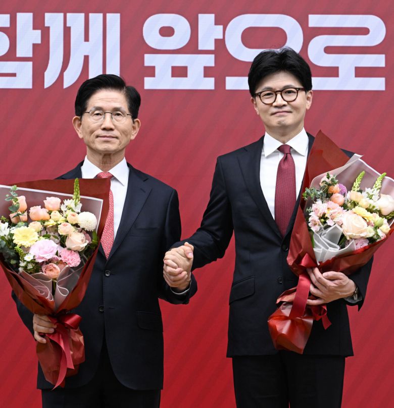 김·한 후보는 ‘3강’으로 꼽혔지만 낙선한 홍준표 후보의 지지를 받으려 치열한 경쟁을 벌였다. 김 후보는 이날 1996년 15대 국회 때부터 홍 후보와 같이해온 인연을 강조하며 “홍 후보의 열정을 잘 모시겠다”고 말했다. 홍 후보의 정계 은퇴를 말리는 편지도 썼다. 홍 후보 지지표 중 다수는 같은 반탄 진영인 김 후보에게 쏠릴 것으로 예상된다. 유상범·김대식·백종헌·김위상 등 홍 후보 캠프에 참여한 국민의힘 의원들은 30일 김 후보 지지를 선언한다고 공지했다.