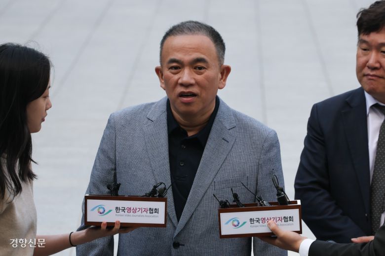 “오세훈 잡으러 올라왔다” 정치브로커 명태균씨가 윤석열 전 대통령 부부 등이 연루된 공천 개입 의혹 관련 조사를 받기 위해 29일 서울고검 청사로 출석하며 취재진 질문에 답하고 있다. 성동훈 기자