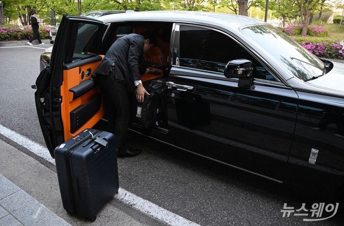 29일 저녁, 서울김포비즈니스항공센터. 조선펠리스 호텔의 의전용 롤스로이스가 번쩍이며 정문 한가운데를 지키고 있었다. 차량은 롤스로이스의 최상위 모델, 팬텀(Phantom)이었다. 수직으로 뻗은 '파르테논 신전' 스타일 크롬 그릴, 보닛 위에 우아하게 솟은 '환희의 여신상(Spirit of Ecstasy)'. 단번에 정체를 드러낸 이 팬텀은 국내 시가만 7억 원을 넘고, 옵션에 따라 10억 원을 호가하는 초호화 리무진이다. 누가 봐도 오늘의 VIP를 위한 무대 세팅이었다.