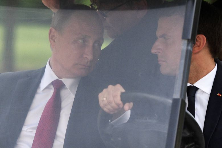 블라디미르 푸틴 러시아 대통령(완쪽)과 에마뉘엘 마크롱 프랑스 대통령. AP연합뉴스