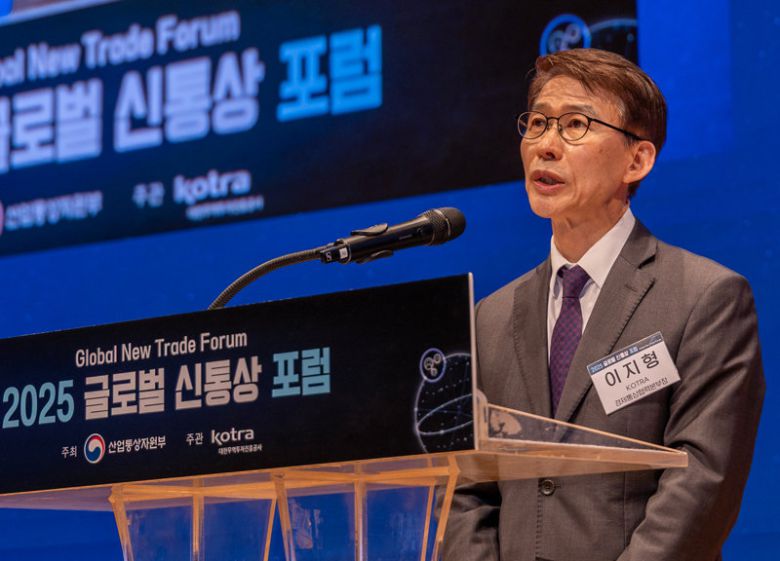 이지형 KOTRA 경제통상협력본부장이 29일 서울 강남구 코엑스에서 열린 ‘2025 글로벌 신통상 포럼’에서 연설하고 있다. KOTRA 제공