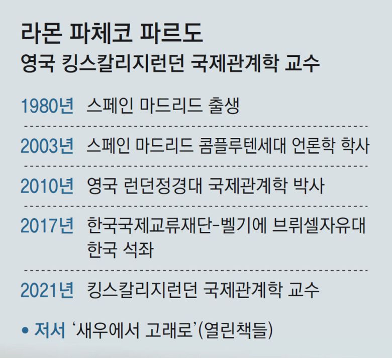 스페인 출신인 파르도 교수는 유럽 내 한국 전문가로 손꼽힌다. 벨기에 브뤼셀자유대에서 한국 이슈를 다루는 ‘한국 석좌’도 겸하고 있다. 2022년 영국 옥스퍼드대에서 출간된 저서 ‘새우에서 고래로: 잊혀진 전쟁부터 K-팝까지’는 전쟁으로 폐허가 됐던 한국이 세계적인 문화 강국이 되기까지를 다뤘는데, 지난해 한국어판(열린책들)으로도 출간됐다. 파르도 교수는 “앞으로도 한류는 세계적인 영향력을 꾸준히 유지해 나갈 것”이라고 내다봤다.
