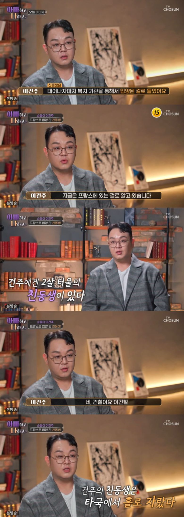 29일 방송한 TV조선 '아빠하고 나하고'에서는 이건주가 프랑스로 입양 된 친동생이 있음을 밝혔다.