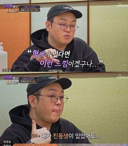 이건주는 "형제, 남매에 대한 갈망이 항상 있었다. 수현이나 상진이가 편하게 문 열고 들어와 편하게 노는 이런 모습 보면 '내 친동생도 저랬겠지?' 생각이 든다. 울컥했다"고 고백했다.
