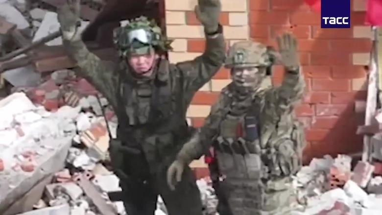 영상에는 러시아군이 러시아 국기를 건물에 꽂은 데 이어 북한군이 옛 소련을 상징하는 붉은 깃발을 흔든 뒤 꽂고 서로 포옹하는 장면도 담겼습니다.