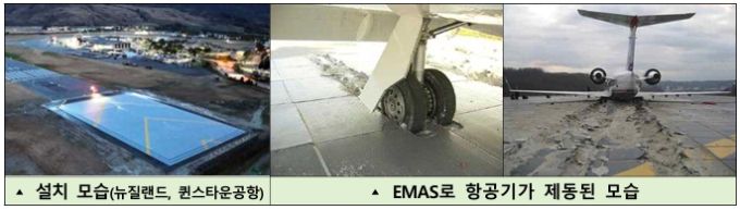 정부는 활주로를 벗어난 항공기의 제동을 위해 필요한 안전구역인 종단안전구역의 길이가 240미터(m)가 되지 않는 공항을 대상으로 EMAS를 도입키로 했다. 대상은 울산공항, 포항경주공항, 사천공항이다. 이들 공항은 하천‧도로 등이 인접해 종단안전구역 연장이 불가능하다. 아울러 제주공항에 대해서도 기존 방위각 시설(H철골구조)의 교체 가능 여부에 따라 EMAS 도입을 결정할 방침이다.