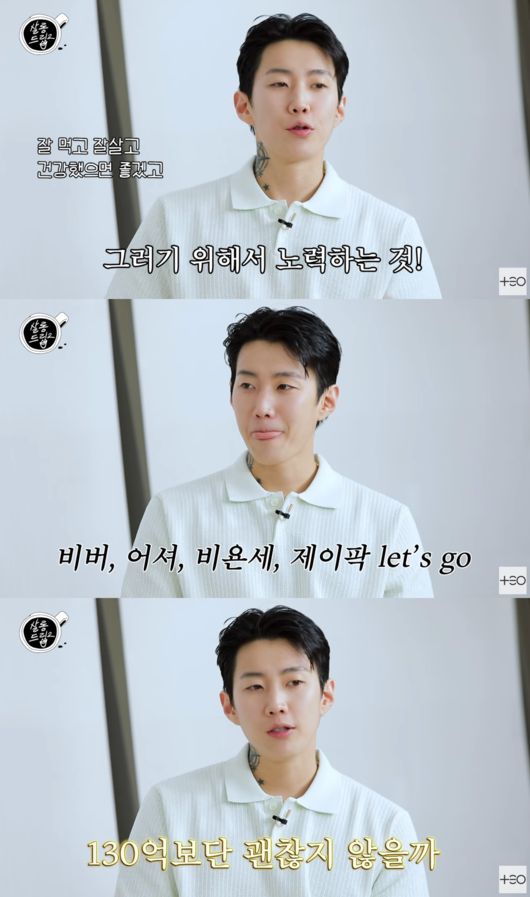 이어 그는 “‘박재범 재산'에 대해 검색해 봤다. 다른 분들 재산을 검색한다. 저스틴 비버, 어셔, 비욘세, 제이지. 모르겠다. 재산 130억? 정확한 숫자로는 모르겠는데 오랫동안 활동했으니 (130억보다는) 괜찮지 않을까”라며 미소 지었다.