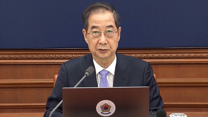한덕수 대통령 권한대행이 굳은 표정으로 국무회의장에 들어섭니다.