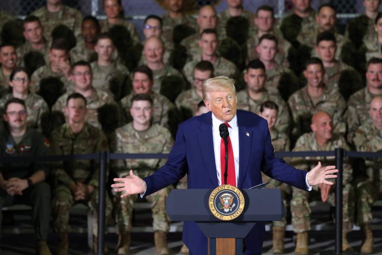 도널드 트럼프 미국 대통령이 29일(현지시간) 미시간주 셀프리지 공군 주방위군 기지에서 미시간 주방위군을 방문한 자리에서 연설하고 있다. [AFP] |