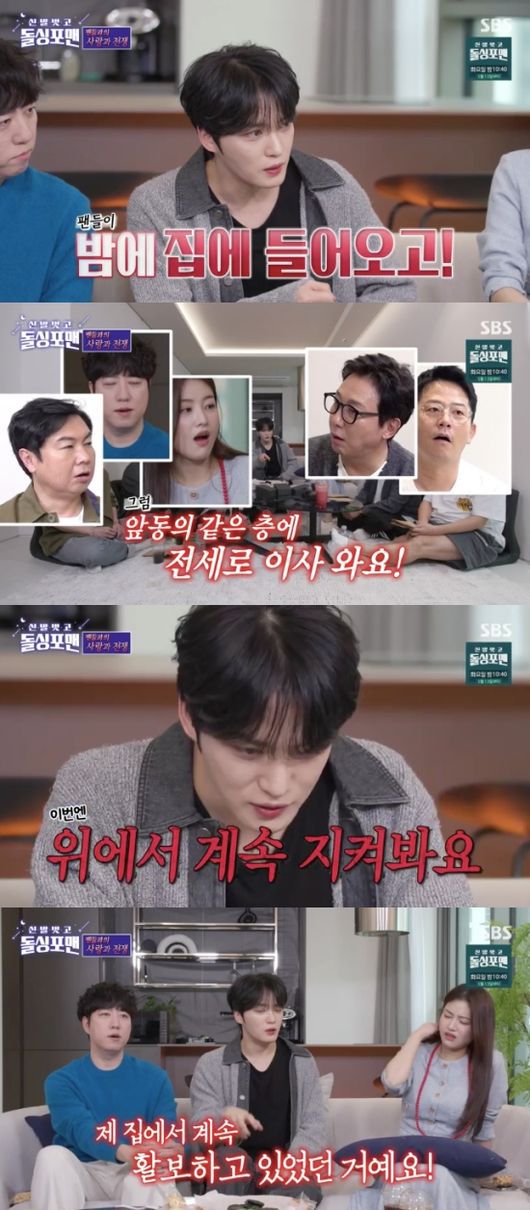 김재중은 극성팬에 시달린 무서운 경험을 털어놨다. 김재중은 “밤에 집에 들어온다거나. 어떻게든 들어온다. 너무 스트레스받아서 높은 층으로 이사를 간다. 앞 동의 같은 층에 전세로 이사를 오더라. 절 계속 보고 있는 것이다. 높은 층에 살면서 뷰를 본 적이 없다. 계속 커튼을 쳐야 하니까. 반지하 같은 1층으로 갔더니 위에서 보더라. 그래서 나무를 심었더니 반대편으로 넘어와 무단 침입을 하더라”라고 말해 모두를 놀라게 했다.