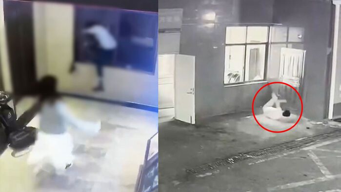 말다툼하다 창문으로 투신해 '와장창'…영상 확산해 논란