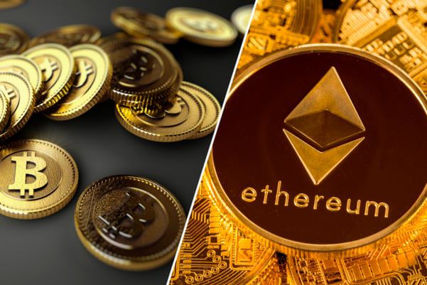 비트코인(왼쪽)과 이더리움의 이미지를 형상화한 이미지 컷. |