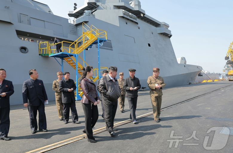 (평양 노동신문=뉴스1) = 북한 노동당 기관지 노동신문은 지난 28일과 29일 신형 구축함 '최현'호에 탑재된 무장체계들의 성능 및 전투적용성 시험이 진행됐다고 30일 보도했다. 김정은 당 총비서는 딸 주애에 함께 시험을 참관했다. [국내에서만 사용가능. 재배포 금지. DB 금지. For Use Only in the Republic of Korea. Redistribution Prohibited] rodongphoto@news1.kr