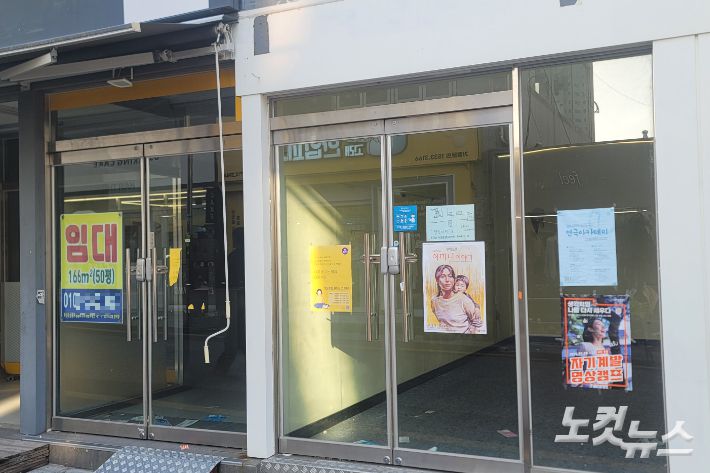 부산대 앞 거리의 상가 두 곳이 나란히 비어 있다. 박중석 기자