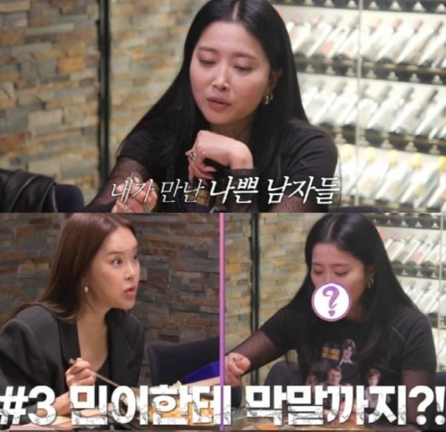 이 영상엔 정확하게 공개되지 않았지만, 오윤아는 이른바 '나쁜남자'였던 남자친구가 아들 민이에게 막말을 한 적도 있다고 해 백지영을 놀라게 했다.
