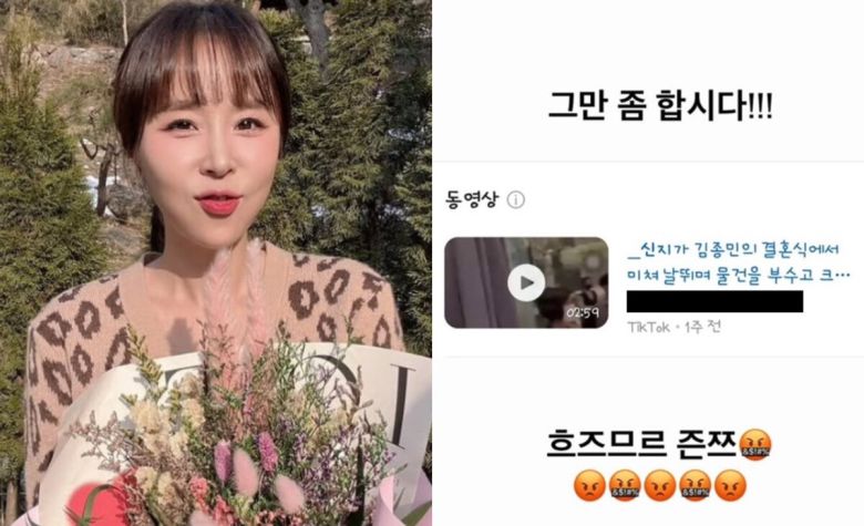 해당 영상은 ‘신지가 김종민의 결혼식에서 미쳐 날뛰며 물건을 부수고’라는 자극적인 영상의 제목으로, 전혀 사실이 아닌 내용이 담겨 있었다.