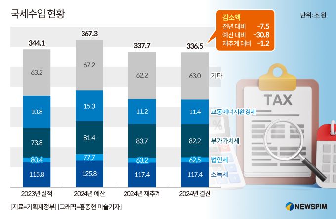 반면 부가가치세(-1조5000억원)와 증권거래세(-6000억원)는 감소세를 보였다.