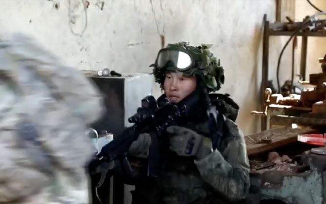 수잔스키 지구는 우크라이나군이 지난해 8월 쿠르스크 기습 침공으로 일부 점령한 영토 중 하나다. 영상을 보면 북한군은 폐허가 된 건물에서 표적을 향해 사격을 가하는 등의 작전을 수행한다.
