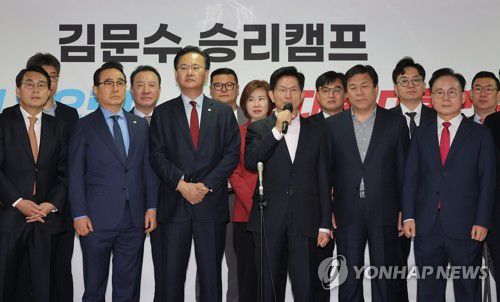 (서울=연합뉴스) 박형빈 기자 = 국민의힘 대선 2차 경선에서 탈락한 홍준표 전 후보 캠프 소속 인사들이 30일 결선에 진출한 김문수 후보 지지를 선언했다.