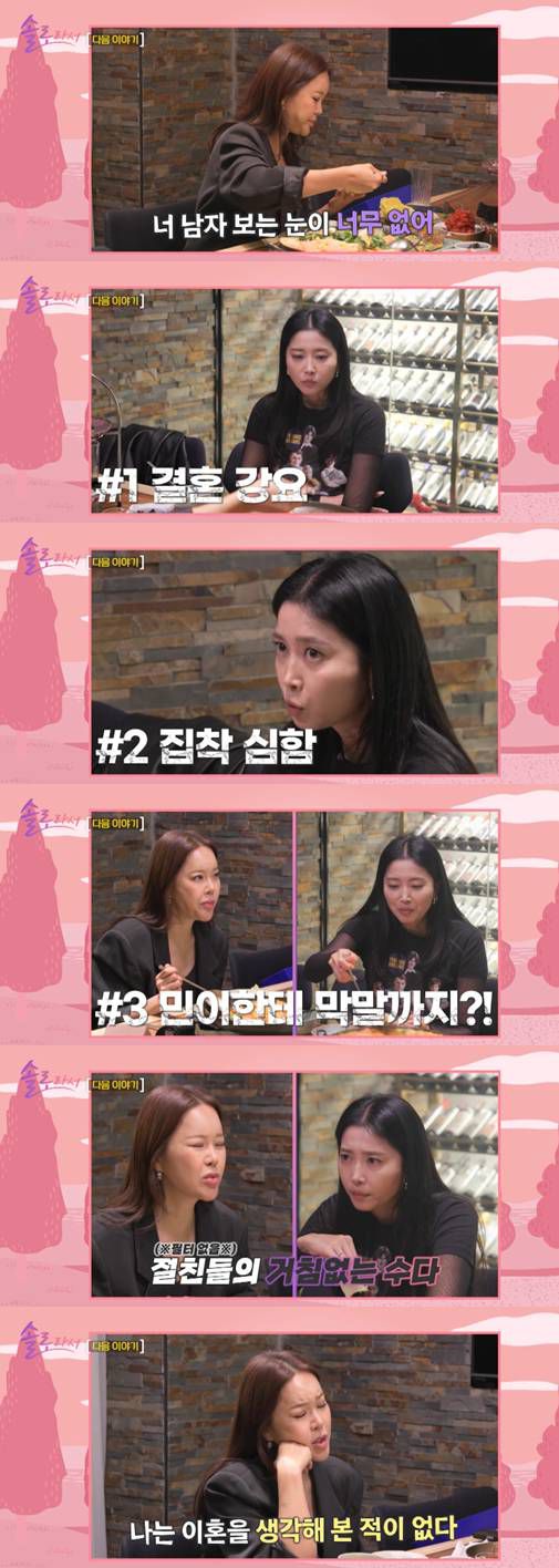 이날 백지영은 오윤아에게 "너 남자 보는 눈이 너무 없어"라며 돌직구를 날렸다.