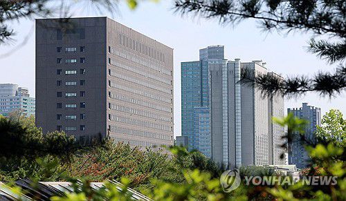 (서울=연합뉴스) 김도훈 기자 = 윤석열 전 대통령 부부와 건진법사 전성배씨 사이의 각종 의혹을 수사 중인 검찰이 윤 전 대통령의 사저에 대해 압수수색에 들어간 30일 서울 서초구 아크로비스타와 서울중앙지검 모습. 2025.4.30