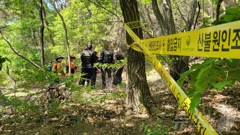 30일 오전 10시 국립산림과학원과 경찰 등 유관기관이 대구 북구 노곡동 함지산 산불 원인을 밝히기 위해 합동감식을 진행하고 있다.2025.4.30/뉴스1 ⓒ News1 이성덕 기자