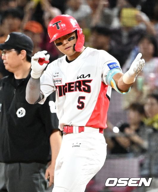 김도영이 타선에 돌아오자 확실히 응집력이 살아나고 있다. 특유의 찬스를 해결하거나 혹은 찬스를 만들어주는 노릇을 톡톡히 하고 있다. 4경기에서 5안타 6타점 2볼넷 3득점 1홈런 2루타 2개를 기록했다. 5안타가 모두 의미가 컸다. 강력한 3번타자가 자리하자 앞뒤 타선도 힘을 내고 있다. 리드오프 박찬호가 3할대 가까운 타격으로 회복한데다 김선빈도 전날은 결승타, 이날은 4안타 3타점을 터트리며 김도영과 함께 찬스를 중심에 깔아주고 있다.