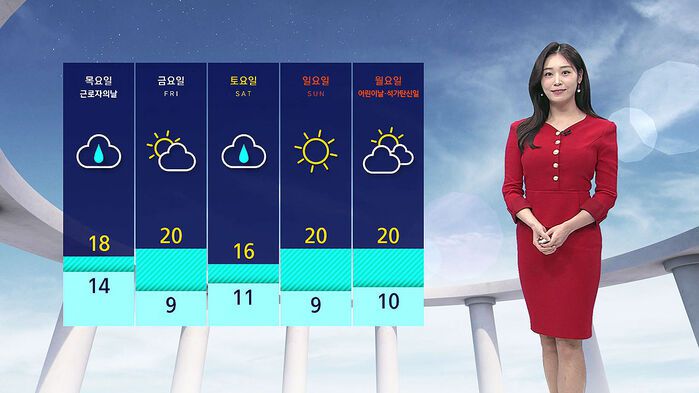 서울의 낮 최고 기온 26도로 어제 낮보다 5도가량 높겠고, 남부지방을 중심으로는 낮 기온 30도 가까이 오르는 곳도 있겠습니다.