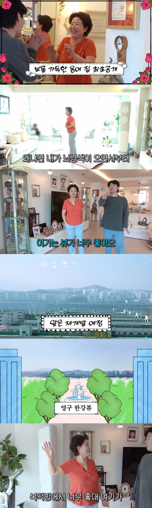 이날 선우용여는 자신이 거주 중인 이촌동의 아파트를 첫 공개해 눈길을 끌었다. 앤틱한 가구와 소품으로 꾸며진 인테리어부터 한강이 멀리 보이는 탁 트인 뷰가 눈길을 사로잡았다.