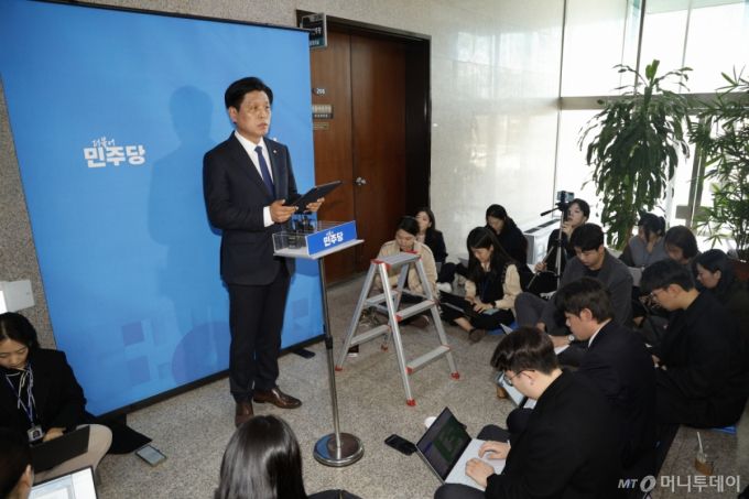 (서울=뉴스1) 안은나 기자 = 조승래 더불어민주당 수석대변인이 4일 서울 여의도 국회에서 헌법재판소의 윤석열 대통령 파면 결정에 대한 입장을 밝히고 있다. 2025.4.4/뉴스1  Copyright (C) 뉴스1. All rights reserved. 무단 전재 및 재배포,  AI학습 이용 금지. /사진=(서울=뉴스1) 안은나 기자