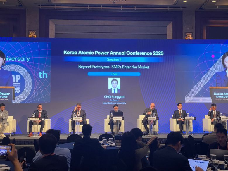‘2025 한국원자력연차대회’ 이틀째인 30일, 소형모듈원전(SMR·Small Modular Reactor) 시장을 선도하고 있는 두산에너빌리티와 GS에너지, 해외 기업의 임원진은 ‘SMR, 이제는 비즈니스다’라는 주제로 발표와 패널 토론에 나섰다. 해외 SMR 기업 임원진은 한국 기업이 앞으로 커질 SMR 시장에서 자리 잡기 위해선 한국수력원자력과 민간 사업자의 협력이 필요하다고 지적했다.