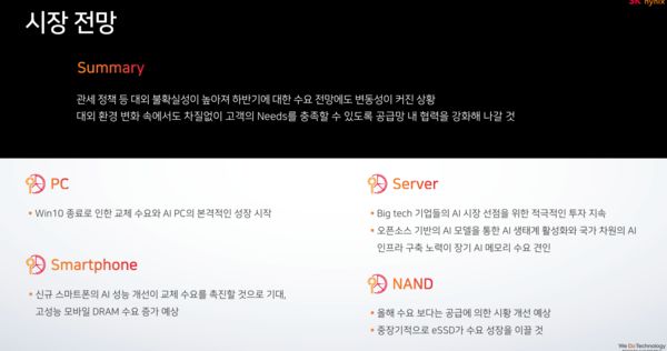 SK하이닉스는 "HBM은 올해 생산량은 이미 판매 계약을 완료했고 상반기 중 2026년 생산량에 대한 공급 가시성을 확보할 것"이라며 "2024년부터 2028년까지 HBM 수요는 연평균 50% 확장할 것"이라고 평가했다.